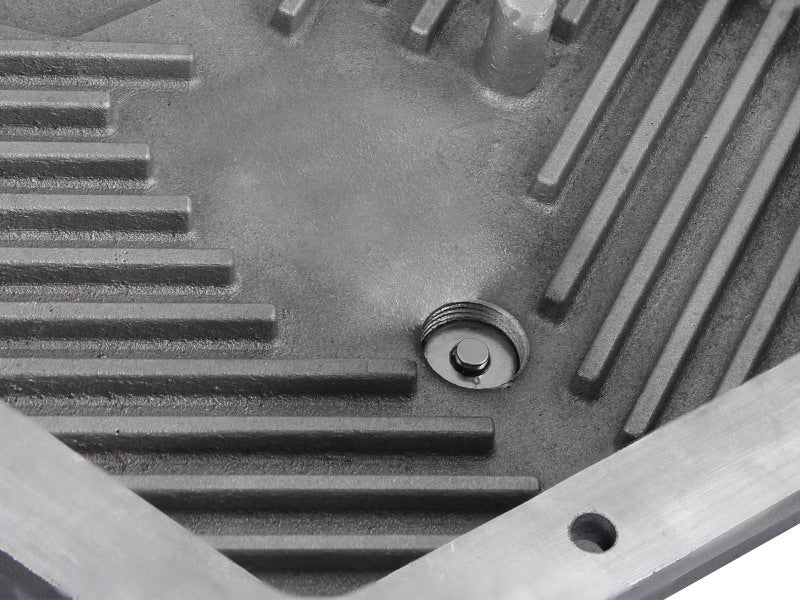 aFe POWER Transmission Pan Ford Trucks 80-92 (AOD Transmission)- Black w/ Machined Fins