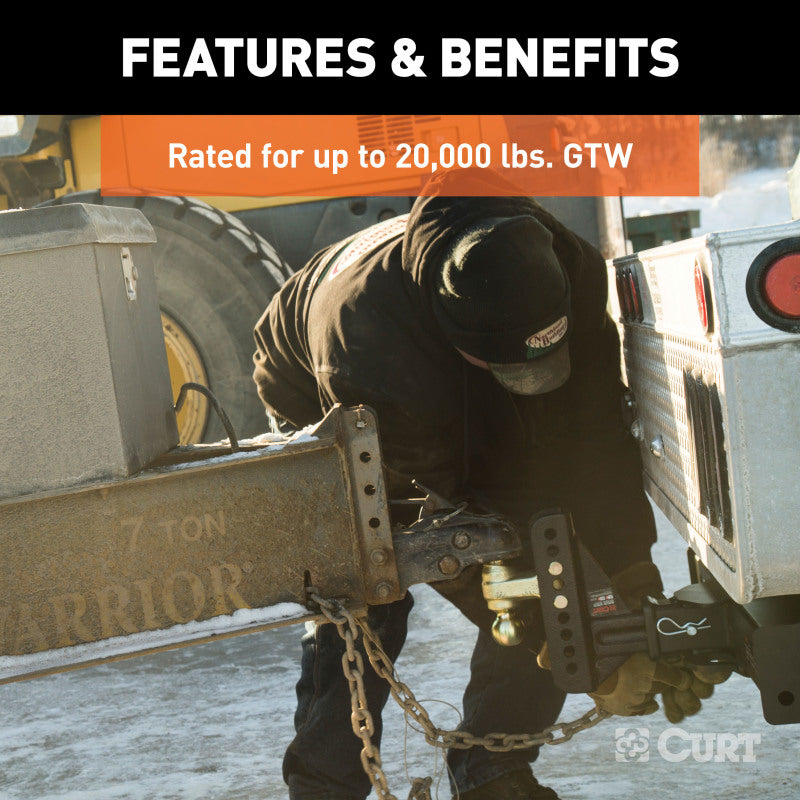 Curt Adjustable Channel Mount w/Dual Ball (2-1/2in Shank 20000lbs 6in Drop)