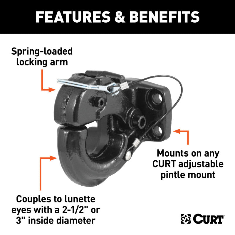 Curt Pintle Hook (60000lbs 2-1/2in or 3in Lunette Eyes)