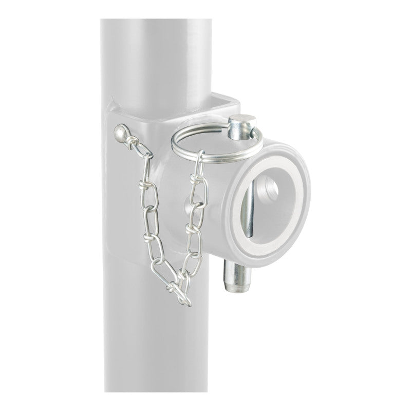 In our goal of being your best source for all things towing, the CURT line of trailer jacks is designed with care and manufactured with pride. CURT jacks are made with quality to promote the life and function of your trailer, and they come in several different styles to accommodate your needs, whether you are a frequenter of the boat landing, the campground, the racetrack or the farm. This replacement retainer pin is intended to fit a CURT pipe-mount swivel jack. It inserts into the pipe mounting bracket and keeps it set in place in the vertical position to support the trailer or folded position during travel. It features a 9/16" pin diameter to fit the male pipe mount #28931 and comes with a 3-1/2" chain for convenient attachment.